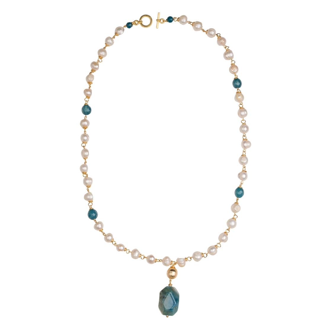 pearl chain, sea blue agate necklace