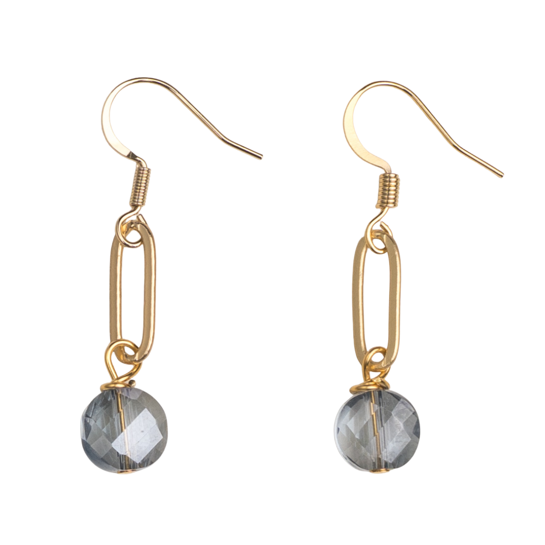 | ice blue crystal, matte gold paperclip chain earring |