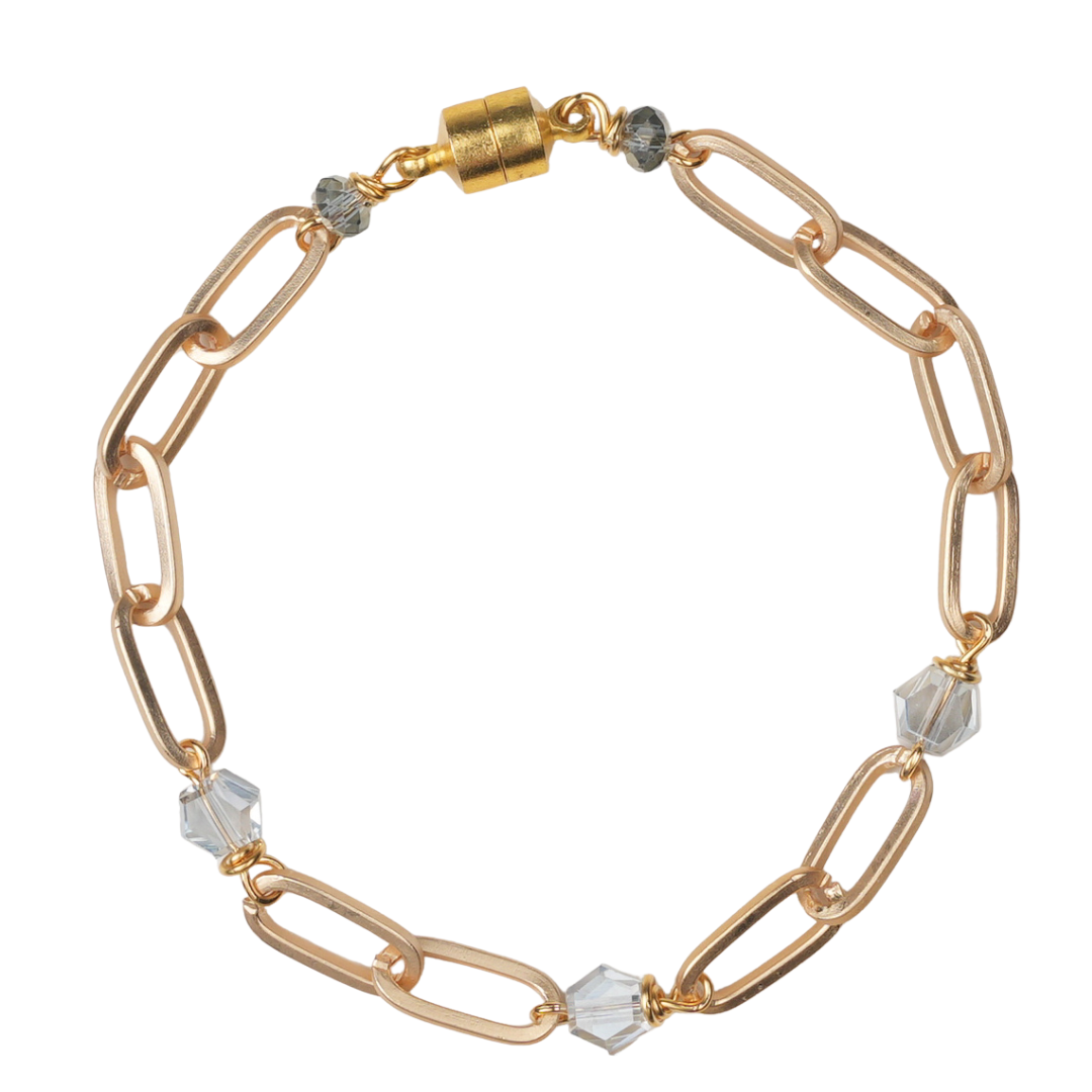 | ice blue crystal, matte gold paperclip chain bracelet |